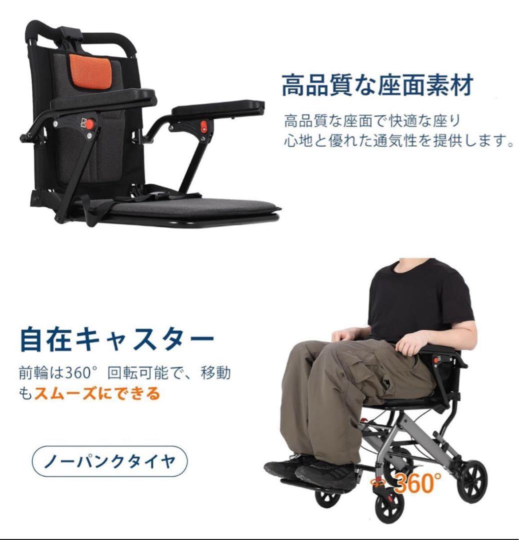 【軽量・仕様】アルミ製の車椅子なので、頑丈で重量は9kgだけです。耐荷重:100kg;材質:アルミニウム;前輪/後輪:15cm/20cm。