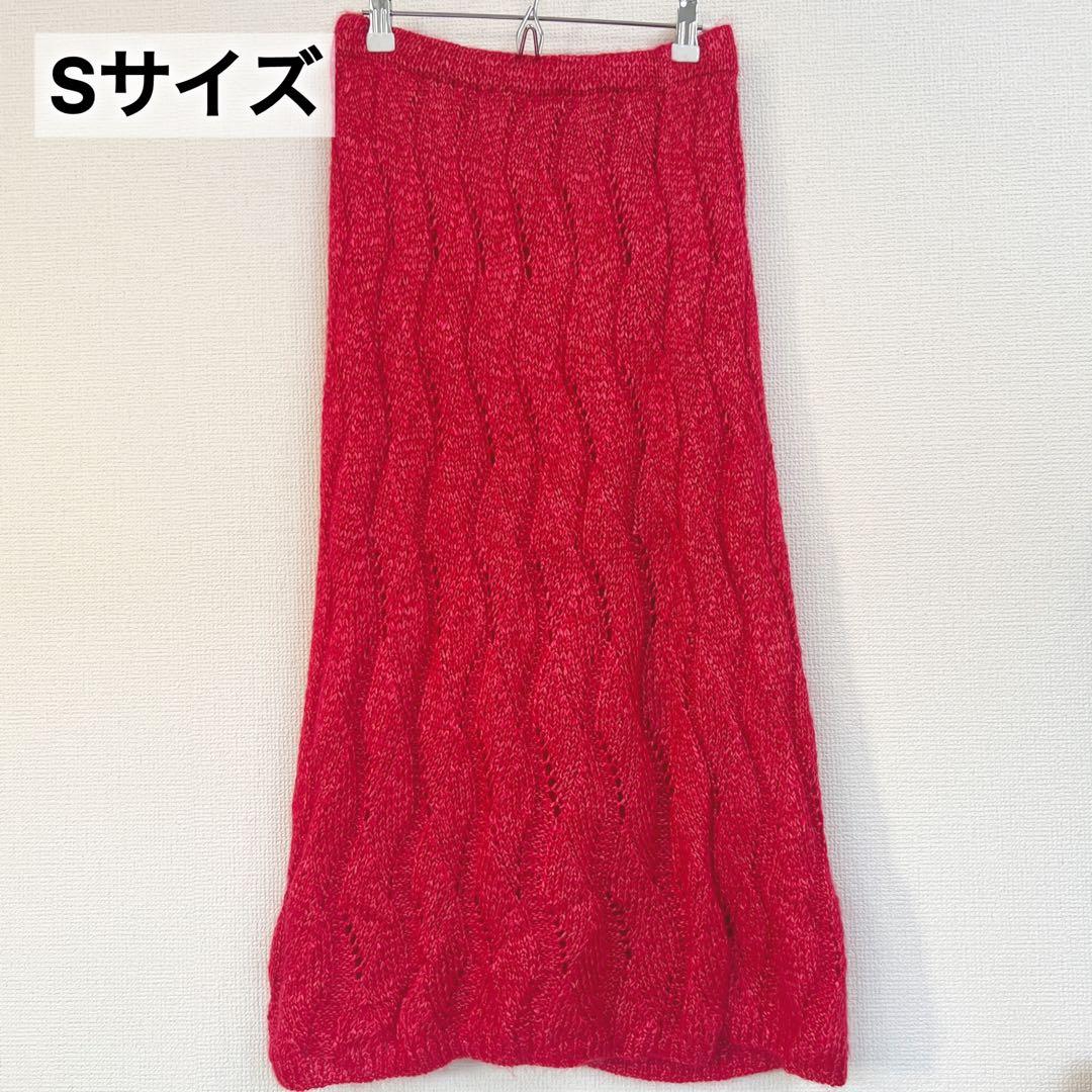 ●カラー 赤系 裏地に縫製時に印したペンのインクが残ってしまっております。 最後の写真をご確認くださいませ。 全体的には未使用で美品です。 - 素材: ニット - デザイン: レース編み #ハンドメイド #スカート #手芸 #レース編みスカート #ニットスカート #タイトスカート #手作りスカート #手編みスカート #ウールスカート