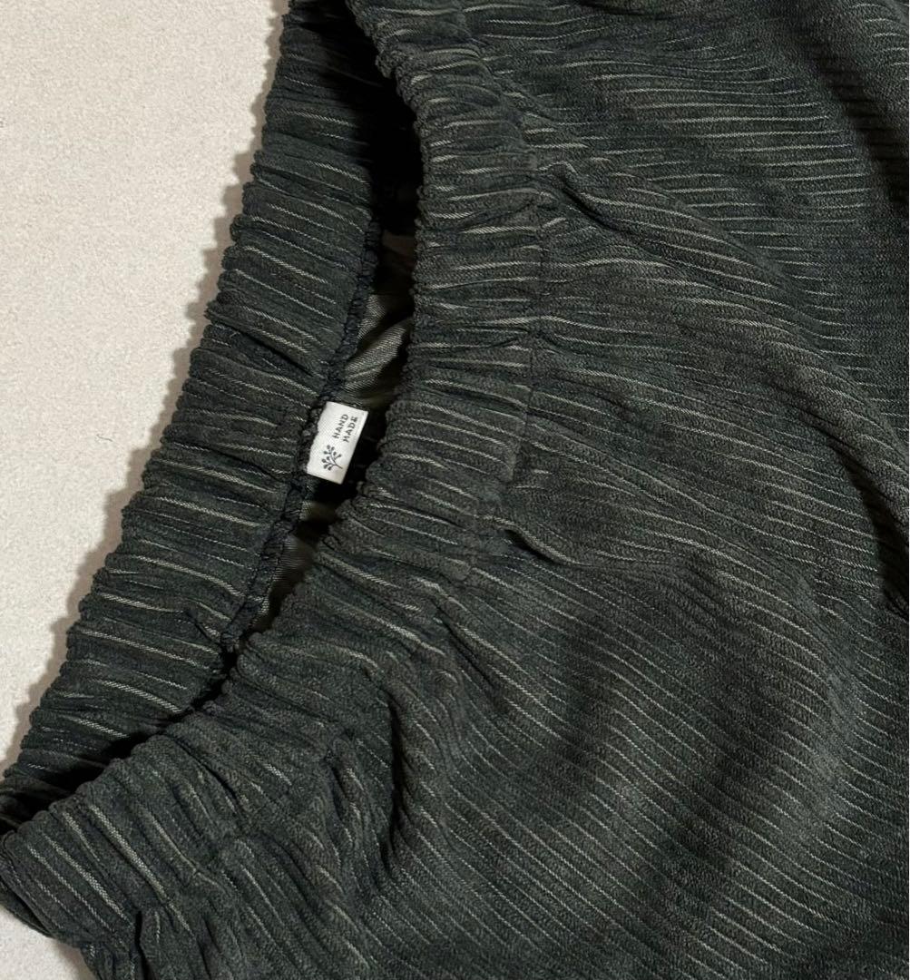 ハンドメイド モスグリーン コーデュロイ ワイドパンツ 裾タック レディース