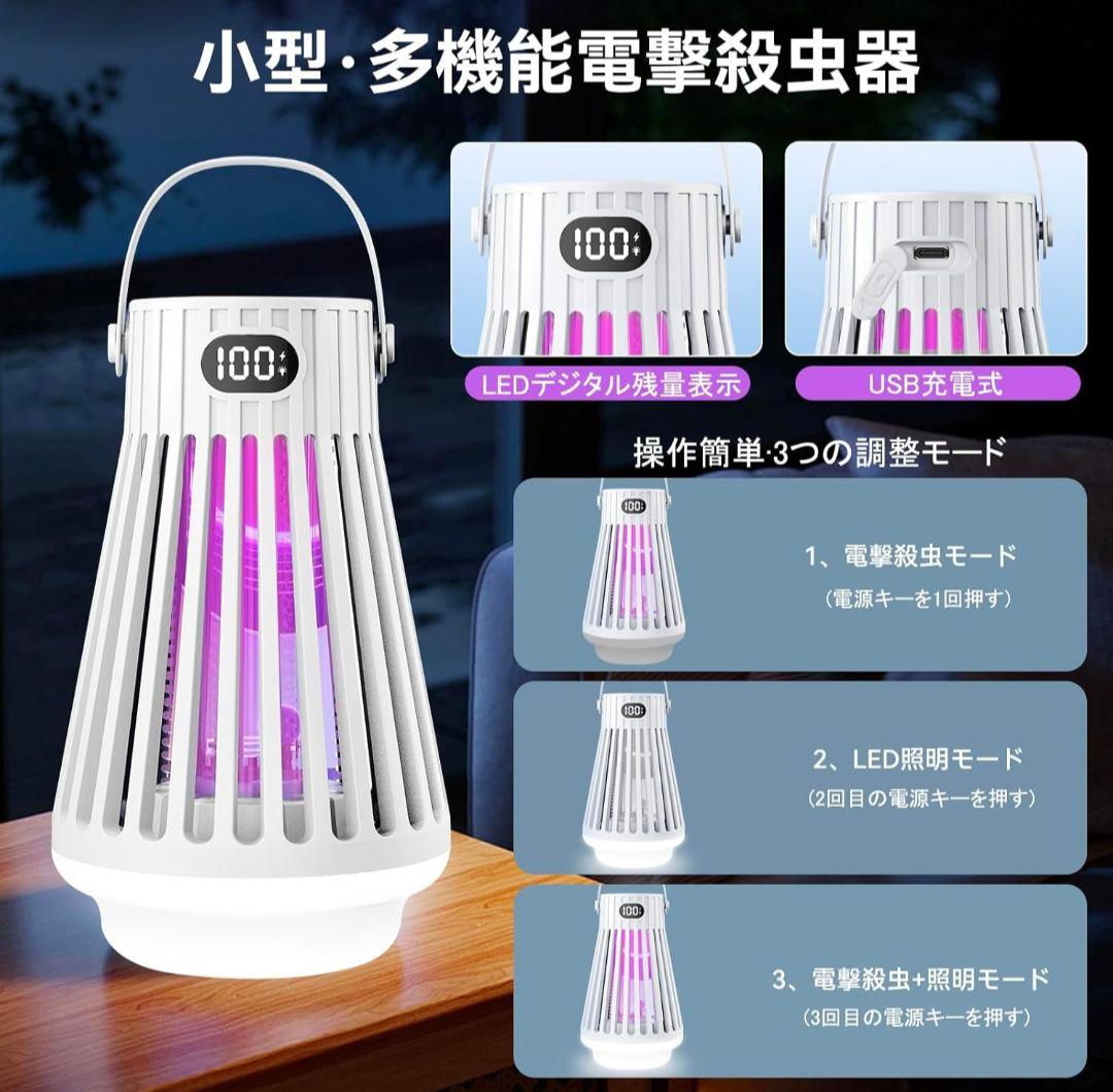 【3モード搭載&屋外OK】 ①電撃殺虫②LEDライト③同時使用の3モードで便利。 IPX4防水で庭・ベランダ・キャンプにも最適。 ナイトライトとしても使える万能タイプ✨️ ✨️