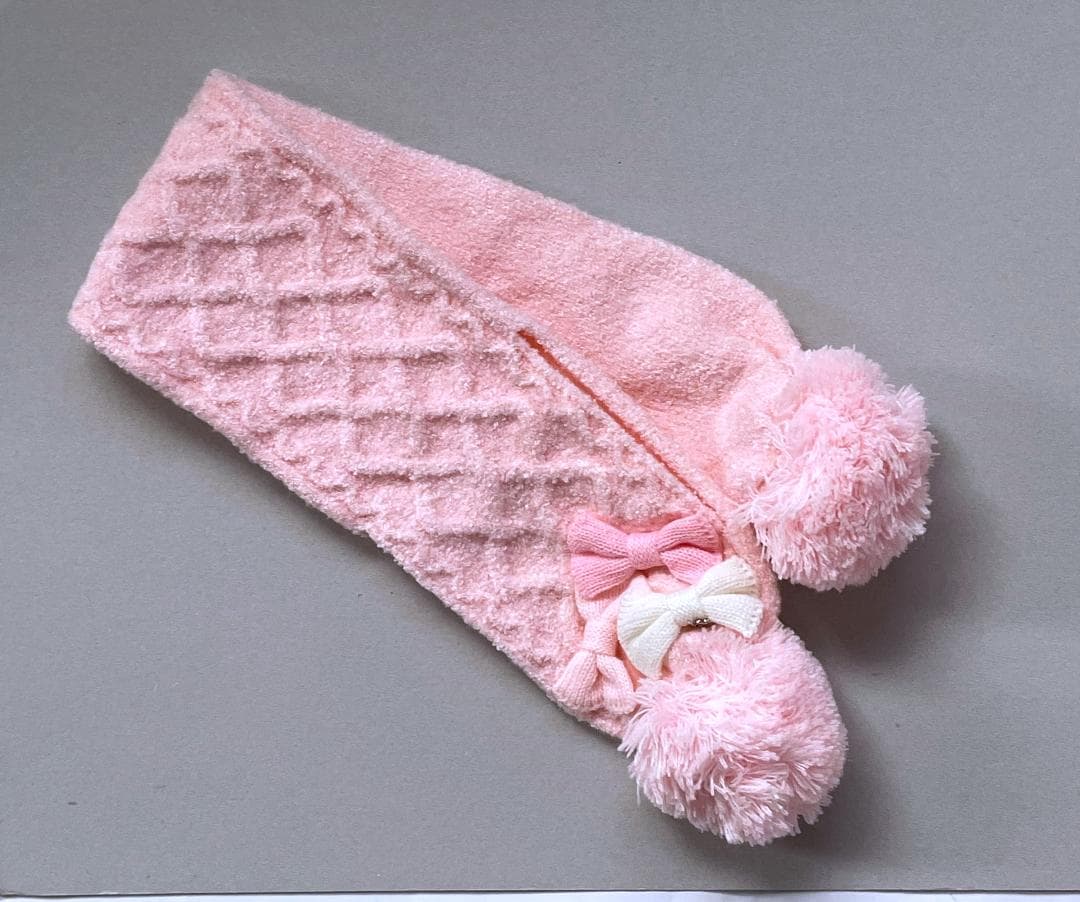 新品★メゾピアノ★ピンク★ポンポン★リボン★マシュマロニット★マフラー★M