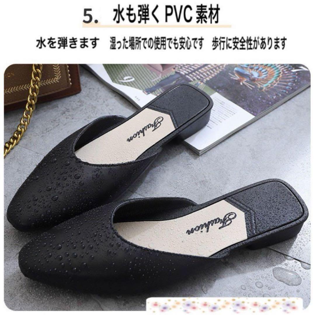 ミュール 黒 ブラック ローヒール フラット シンプル きれいめ 学校 撥水 柔