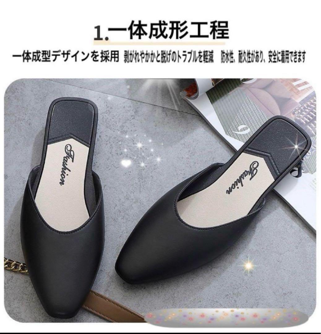 【未使用品】 ミュール・サンダル カラー:ブラック サイズ:38(約24cm) ・ポインテッドトゥデザインで、美脚効果が抜群なミュールサンダルです。 ・かかとが無いので、さっと履けて楽ちんなうえ、上品に見えます。 ・ナチュラルなので普段のお出かけにも合わせやすいイメージです。 出来る限り安価な発送方法を選択して送らせていただきます。 ノーブランドです。海外製特有の「臭い・縫製の甘さ」などが認められる場合があります。 お客様都合でのイメージ違いによるキャンセルはご遠慮下さい。 商品に問題がありましたら、お手数ですが、『評価をする前に』ご連絡下さい。誠意を持って対応させて頂きます。 破損品の対応につきましては、画像確認させていただいでおります。確認ができない場合は対応出来ません。『評価後では一切、対応出来ません』のでご了承下さい。 最後までご覧頂きありがとうございました! #たぬきショップ #フラットシューズ #ミュール #フラット #ローヒール #きれいめ #上品 #ブラック #黒 #学校 #学校行事 #参観 #保護者会 #式典 #フォーマル #室内履き #上履き #来客 #オフィス #会社 #ナース #事務 #24.0