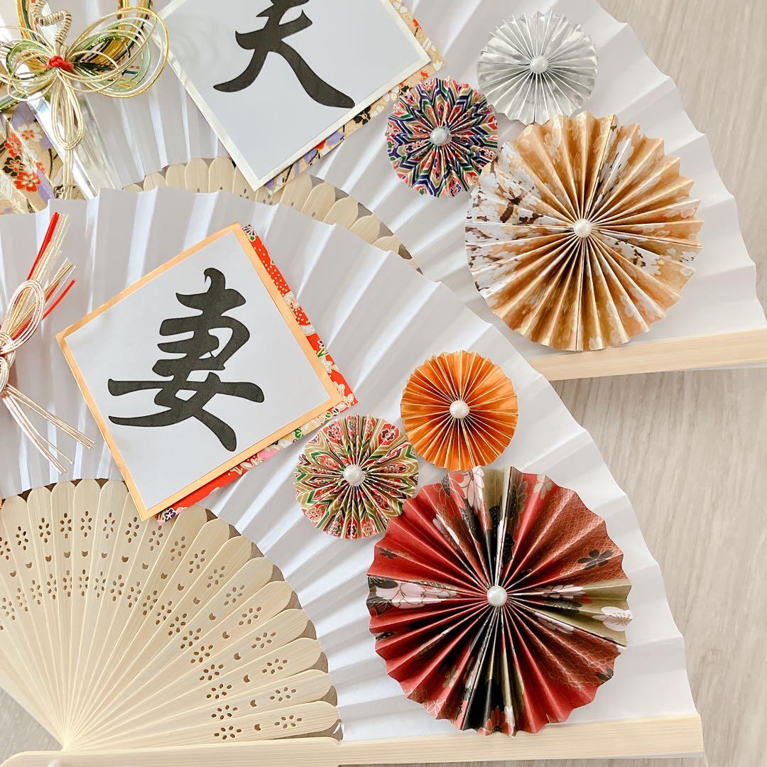 【発送】 ・丁寧に梱包、新品の段ボールに入れ、普通郵便にて発送します。 普通郵便はお届けまでに土日祝を除く平日3〜4日かかりますのでお急ぎの方はコメントにてご購入前にご相談くださいませ。 メルカリ便…+350円 速達…+450円 にて承りますのでご希望の場合はご購入の前にコメント欄にてお申し付けください☺︎ ・段ボールの大きさの関係で扇子のたためるところはたたんで梱包致しますが、簡単に元に戻せますのでご安心ください◎ ↓他にも出品しておりますのでこちらの商品もご覧ください♪↓ #かおり_ハンドメイド #前撮り#和婚#和装ガーランド#結婚式#前撮りアイテム#おうち前撮り#前撮りグッズ #ウェルカムスペース#フォトウェディング#前撮り小物#プレ花嫁#結婚式グッズ