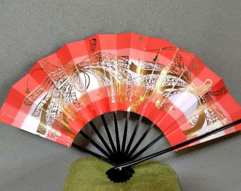 日舞 扇子 舞扇子 朱色 金色 未使用 箱付き赤と金のリボン模様 和装小物