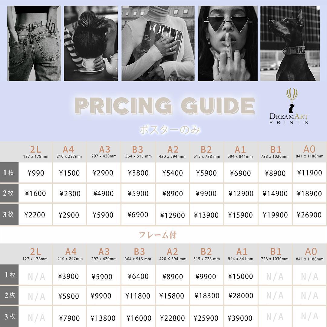 ◆ *A4サイズポスターのみの料金です。フレームは付属しておりません。 *高品質な光沢感と厚みのあるプログレードインクジェット用紙を使用。 (注意:B3サイズ以上は高品質なマットアート紙を使用します。)