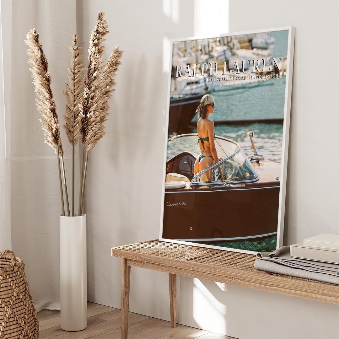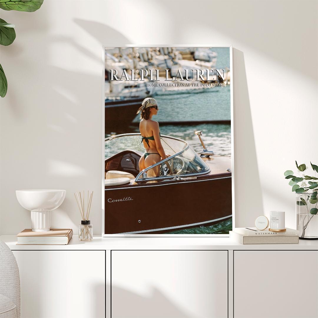 おしゃれポスター ボートガール マリーナシーン フォト 洗練 透明 爽快 軽やか