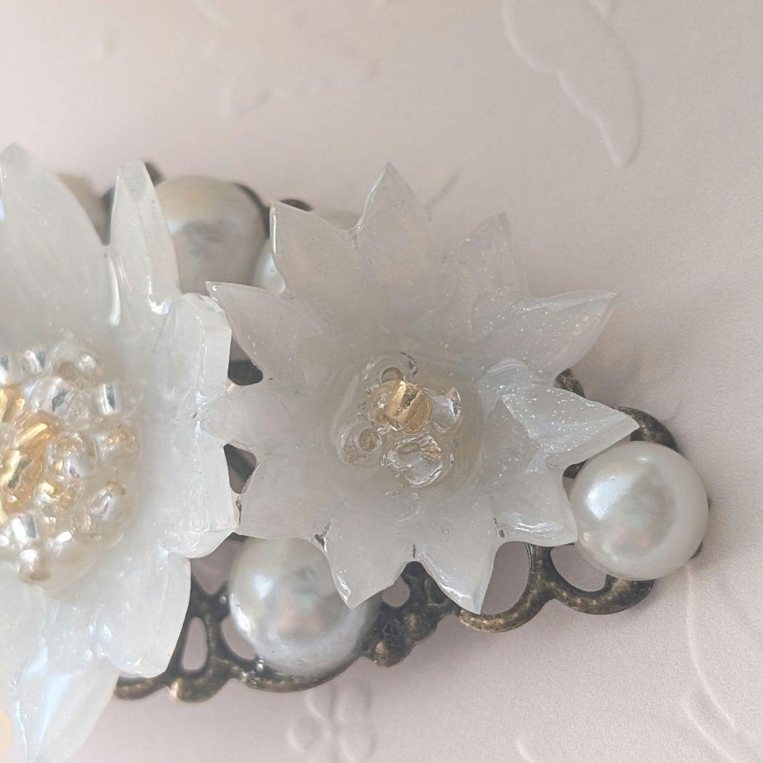 ホワイトꕤ.。ノースポール バレッタ アクセサリー [H-197]