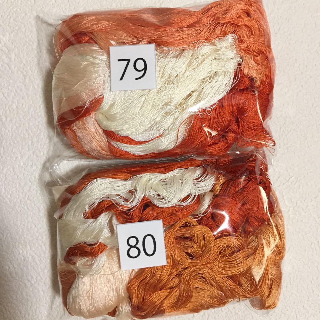 ●商品 くみひも 組紐 変わり染め 絹糸100% 2.7m 16玉用 79.変わり染め 吸い上げぼかし [白から朱色]…37.3g 80.変わり染め 吸い上げぼかし [白から濃いオレンジ色]…37.6g 色名はパッと見で私が思った色名を付けております 参考程度にお願いいたします 写真や文章でできるだけ伝わるように工夫しておりますが「思ってた色と違う」とお申し出されましても、対応は致しかねます