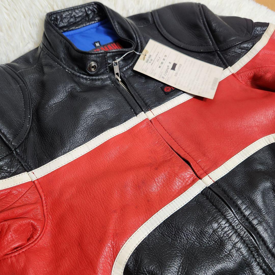 【新品タグ付き!定価10万】YAMAHA 牛革 ツナギ 赤 黒 Mサイズ