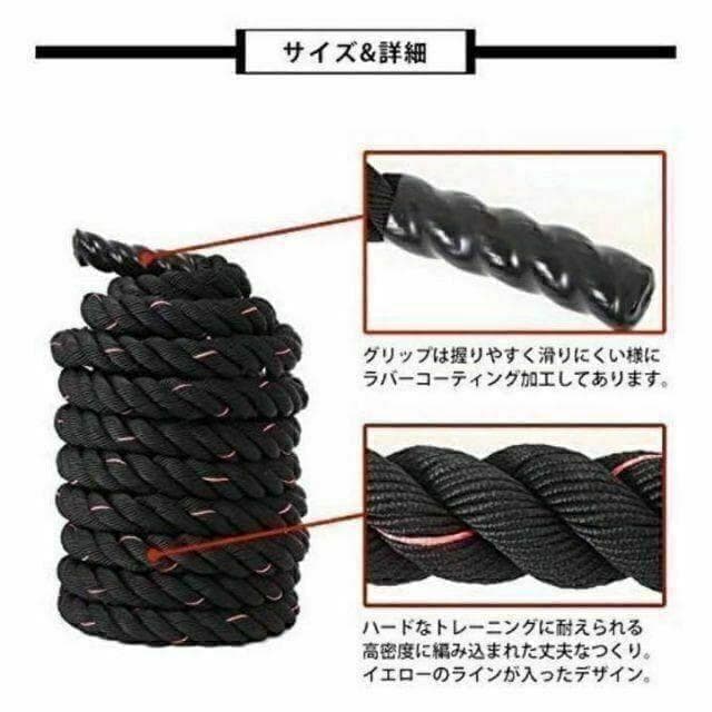 ●特長 ☆ジムロープ初心者でも大丈夫 、ロープが細くて女性の方でもしっかりトレーニング出来ます。 太さ50㎜と違い低負荷で長く使用でき有酸素運動にもなる為ダイエットに効果的。 ☆HITトレーニング: 高強度インターバルトレーニングや、セット、スーパーセット間のトレーニングに最適です。このバトルロープを使えば、カロリーを大量に燃やし 短時間で効果の高いワークアウトができ脂肪燃焼を増やします。一つのツールで耐久性、強化トレーニング、コアトレーニング、スタミナと持久力を向上します。 ☆全身ワークアウト: バトルロープは、腕、背中、肩、腹筋やヒップの筋肉に効果が現れます。ランジ、スクワット、ジャンプなどの動きと組み合わせて使うと、下半身に効果的です。体力・筋肉・バランスが身に付く効果的なトレーニング ジムロープを両手または、片手で振るだけ簡単なトレーニング 短時間振り続けるだけでも激しい運動量で心拍数が上がり汗だくになります。 上半身のみでなく下半身にも効果的。 ☆頑丈な作り: 3つのなわを組み合わせたデザインと、丈夫なポリエステルダクロンを用いているため、高い引張強度を備え、切れることはありません。過酷な使用条件でも耐えられるようデザインしています。設置は簡単、柱や重りに固定して振るだけで効果的なエクササイズが行えます。 ☆プロアスリートに使用されているトレーニングギア、ジムロープ TV等でも話題のトレーニングバトルロープは、長さ9mから15mまでレギュラータイプで十分に負荷を 調節できるので初心者の方は勿論、上級者でも満足の行くトレーニングが可能です。 #筋トレ #筋肉 #家トレ #トレーニング#ダンベル#腹筋#プレゼント#ダイエット#ボディメイク#シェイプアップ#体力作り #2380 0075