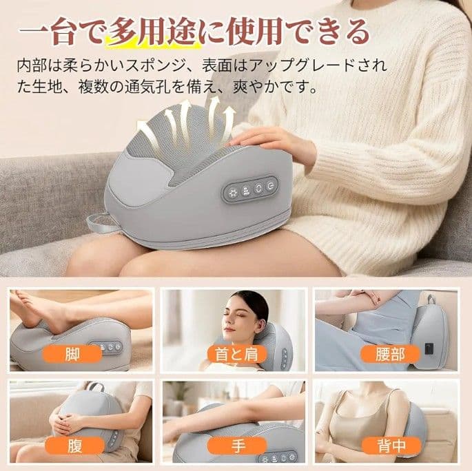 【改良素材、一台で多機能】改良版の多機能腰枕は高弾性素材を採用し、快適で通気性があり柔らかく、高い 復 元 力を備えています。一台で多機能を実現し、首・肩・腰・背中・太ももをリラッ クスさせます。この改良版腰枕は、ご家族全員に最適で、性別を問わず、あらゆる方のニーズにお応えします。