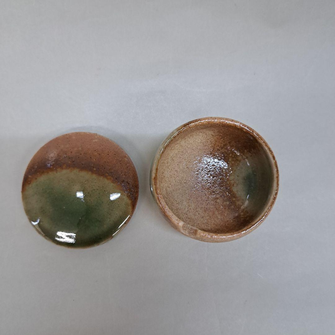 陶器製 蓋付き 緑と茶色のグラデーション 薬味入 3個セット