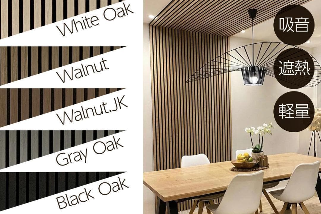 ◆商品説明 カラー Walnut ※他カラーをご希望の際はコメントくださいませ 材質:天然木目の圧板 + 中密度繊維板 + 高密度吸音ポリエステル繊維 重量:1枚約1.95kg サイズ:1枚約80*30*2.2cm(6枚入り) 施工面積:1.44 平方メートル ◼️高い吸音効果で静かな空間を実現、特殊な音響設計により、室内の反響音や環境ノイズを効果的に吸収し、快適な音響環境を提供します。 ◼️家庭、オフィス、録音スタジオ、映画館などに最適です。騒音が少なくなることで集中力が向上し、ストレスの軽減につながります。 仕事や勉強、リラックスしたい空間にぴったりです。 ◼️リアルな木目調デザインで美しい仕上がり、自然な木目模様の仕上げが施されており、 いい雰囲気、様々なインテリアスタイルにマッチします。