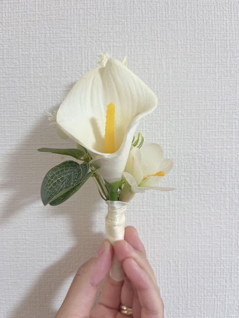 【オシャレで気品ある豪華な映えるブーケ】 本物のようなアーティフィシャルフラワーで お作りしたオシャレなクラッチブーケ メインのお花はカラーとホワイトチューリップ 結婚式や前撮り、二次会やお色直しなどの晴れ舞台にぴったりのブーケとなっております。 ウェルカムスペースに飾る方やフォトウエディングなどで使用される方も多くいらっしゃいます。 ✨アーティフィシャルフラワーだからこそ✨ ⚪︎枯れることなく思い出を残しておける ⚪︎ワイヤーなのでアレンジができる ⚪︎生花よりも少しお安くお作りできる ホワイト系のウエディングドレスはもちろん! 淡い色味のドレス、パステルドレス、ブラックドレスなど様々なドレスに合わせていただけます 前撮りの撮影にご使用される方やウェルカムスペースに飾られる方も多いです。 和装にもぴったり! 縦長さ:約35cm 12月限定✨ +500円にて作成しておりますブートニアも セットでプレゼントいたします。お好みを聞いてから作成しますのでコメントにてお知らせくださいませ^_^ リボンは3枚目以降の光沢感のあるリボンになっております。(1.2枚目は仮止めリボンです) ⚠️注意 アーティフィシャルフラワーは海外製品となります。梱包はブーケを梱包資材で包装、段ボールにて発送させていただきます。素人梱包になりますので、気にならない方のみご購入お願いいたします。お急ぎの場合はご連絡くださいませ! #cakブーケ もよろしければご覧ください! ロングクラッチブーケ ブーケトス 造花ブーケ 花束 クラッチブーケ ラウンドブーケ キャスケード オーバルブーケ アーティフィシャルフラワーブーケ 前撮 二次会 海外ウエディング 前撮りブーケ プリザーブドフラワーブーケ ブライダルブーケ ボタニカル 海外挙式 カラードレス 着物 和装 卒業式 ウエディング小物 振袖 オケージョン 後撮り