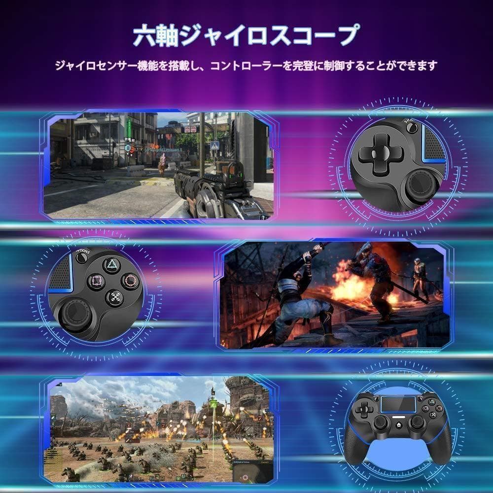 【純正品より多機能・よりリアルかつ臨場感溢れるゲーム体験】最新ぷれすて4 コントローラー 基本機能に加えて、安定したBluetooth接続、連射機能、二重振動、加速度・重力感応、タッチボタン、タッチパッド、LEDライト、3.5mmイヤホンジャック、低電圧警告機能,様々な機能がサポート。6軸センサーを搭載したP4 こんとろーらーで臨場感あふれるので、ヘッドセットを差し込んでゲームの世界にどっぷり浸かることができます。高感度のタッチコントロールパネルと共有ボタンがあり、複数人数で様々な使い方ができます。独自のデュアルショック機能が搭載され、タイムリーに振動がプレイヤーへ伝わり迫力あるプレイが可能に。本格的なゲームが楽しますよ。MicroUSBType-B充電ケーブルと日取扱説明書が付属しています。