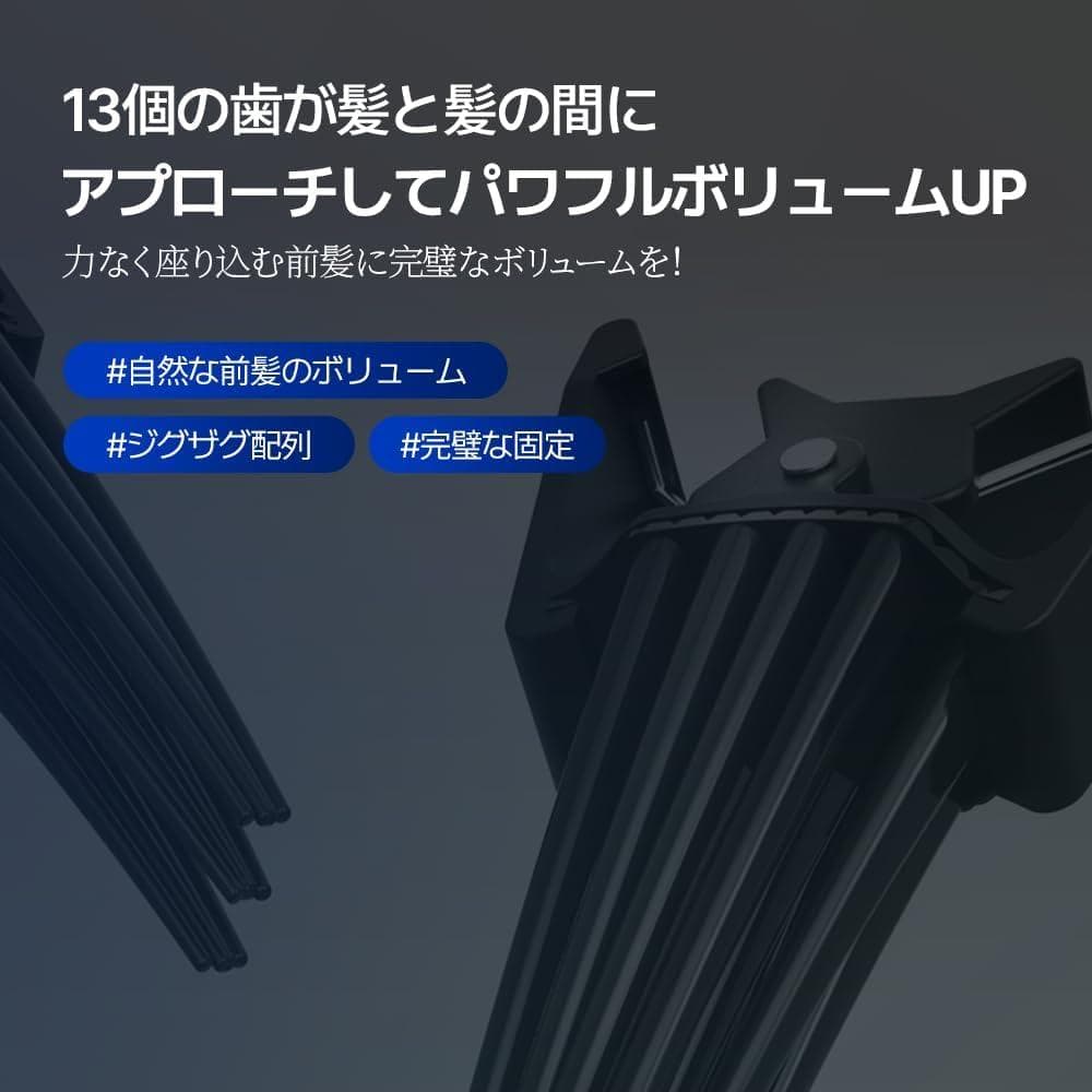 【瞬時ルートアップ効果】特殊構造の根元立ち上げクリップが前髪基部を支え、ワンタッチでふんわり高さを実現。平らな頭頂部とお別れします。