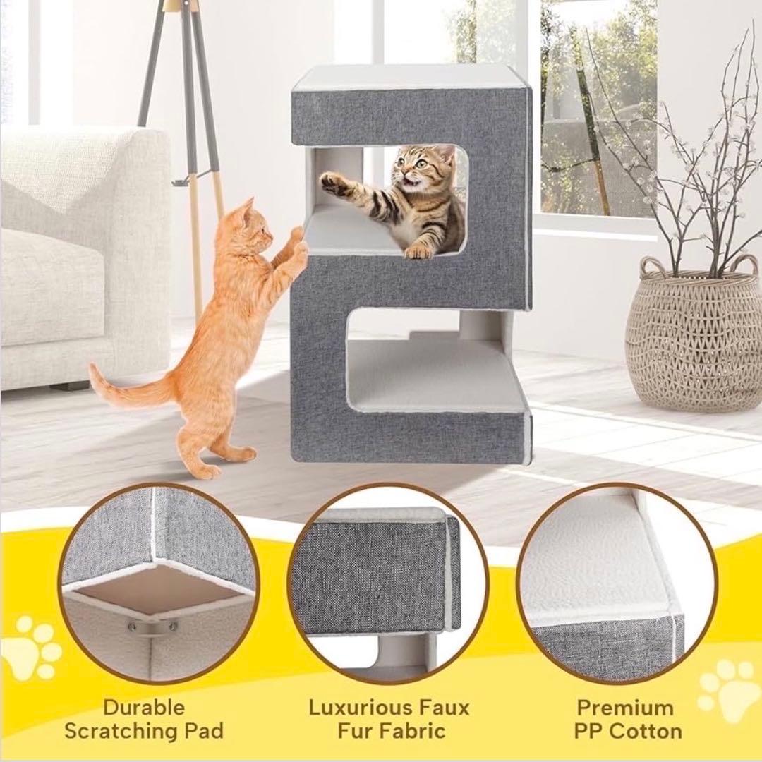 コーヒー色キャットタワー 猫タワー 据え置き 爪とぎ 階段 広いベッド ハンモック 多頭飼い 子猫 大型猫 部屋付き クッション 安定 転倒防止 取り付け簡単