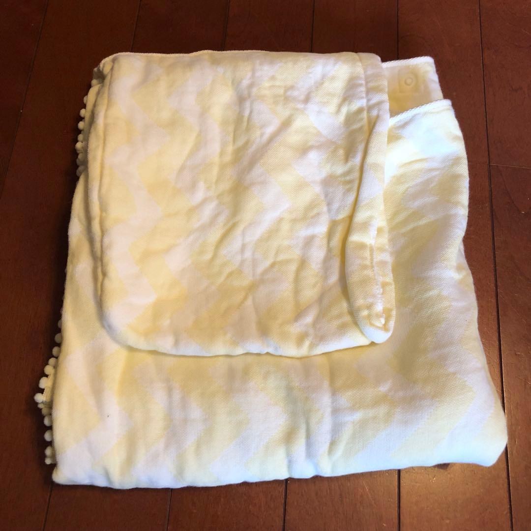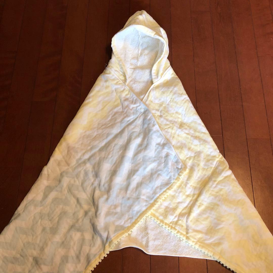 今治タオルの日本製 フードとボタン付きのイエローカラーおくるみ、ブランケット