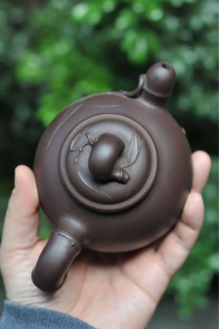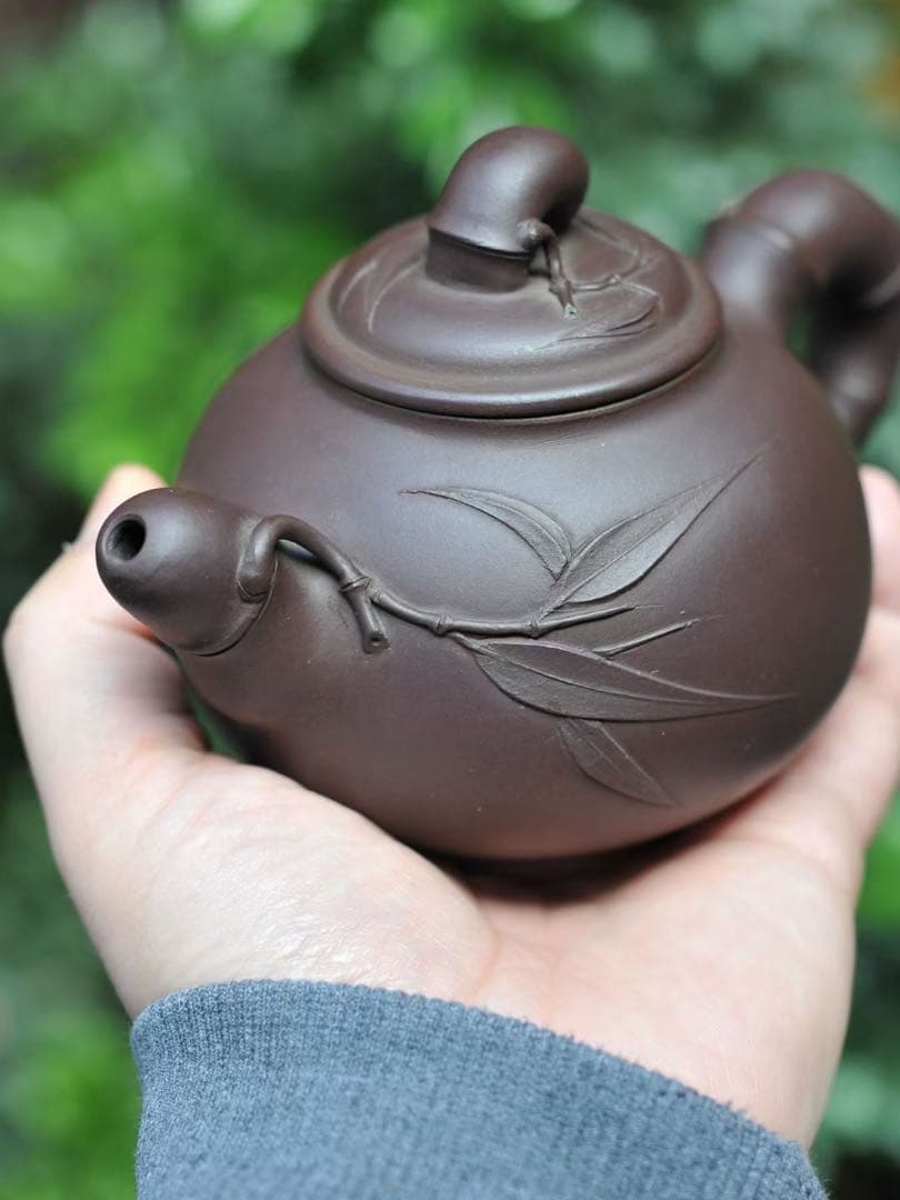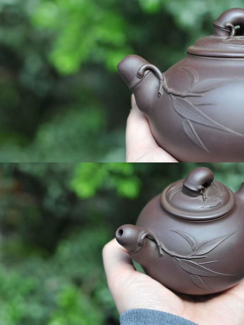 紫泥 竹彫り ティーポット 紫泥 急須 茶壺 茶銚 茶注 中国茶器 煎茶道具