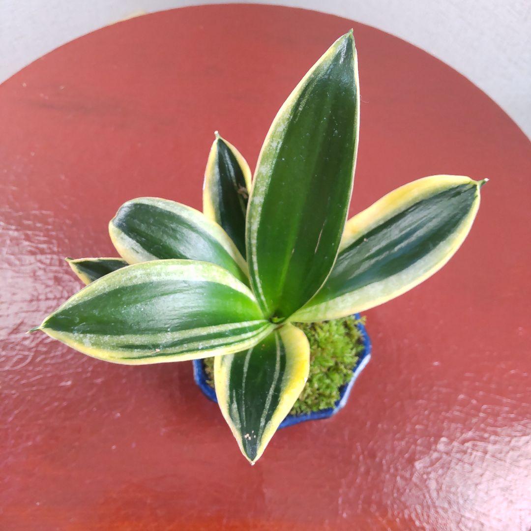 可愛いインパクト☆サンスベリア 素敵な青色お花型鉢付き サンセベリアゴールデン