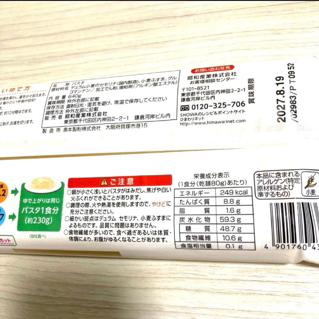 【送料無料・匿名発送】蒟蒻効果 グルコマンナン入りパスタ 640g×3袋セット ※こちらの商品640g×3袋セット販売(計1920g)です。他での販売でよくお見かけする400g×4袋セット販売(計1600g)よりも320g多くて、4人前も多いです! 糖質オフ 食物繊維 健康 昭和 SHOWA 蒟蒻効果 1袋640g入り×3袋セットで発送します。 ※賞味期限:2027.8.19 パスタ グルコマンナン入り 糖質オフ 食物繊維 健康 こんにゃく芋由来のグルコマンナンを配合したパスタです。 本品80gの乾麺をゆでると水を吸って膨らみ、ゆで上がり重量は自社従来品のスパゲッティ100gと同等。 そのため ・糖質1/4カット ・食物繊維は1日の1/2分含有 とてもヘルシーで美味しくパスタが食べられます。 ※お値下げ・ばら売り不可です。すみません。 ペット無し、喫煙者無し、匿名発送(簡易包装、プチプチなし)です。 迅速に発送いたします。 ※配送中の取り扱いで麺が折れてしまう可能性がありますので、ご了承いただける方のみ、ご縁がありましたら幸いです。 ※賞味期限、詳細は必ず画像をご覧下さい。 大容量であるため、残りの賞味期限等を考慮のうえ、ご検討いただけたらと思います。 素人保管のため、完品ではないことを、ご理解の上、ご検討の程宜しくお願い致します。 神経質な方はご購入をお控え下さい。 ※他の商品も出品しておりますのでタップしていただければ幸いです⬇️ #もみじ店の1点ものの出品一覧はこちら 最後までご覧いただきありがとうございました! 082299