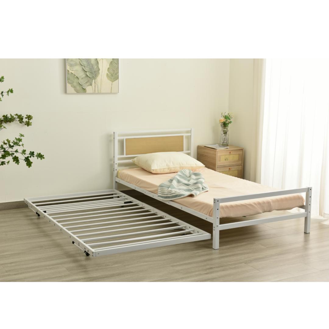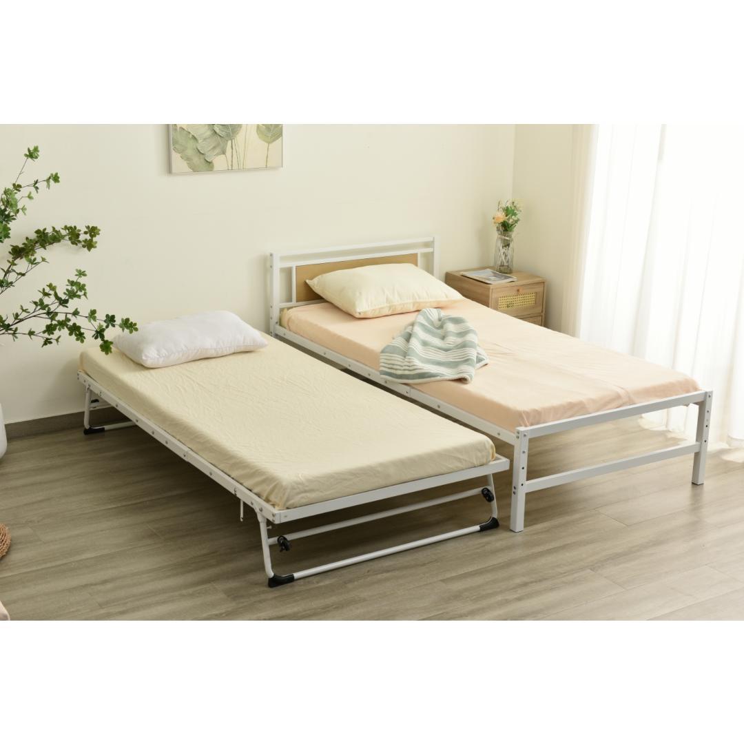 【商品仕様】(1)シングルベッドサイズ外寸:104幅×204.5長さ×70.5高さcm重量:16.5kg耐荷重:約120kg(2)折りたたみベッド外寸:102幅×195長さ×34高さcm重量:13.8kg耐荷重:約120kg素材:スチール(塗装仕上げ)カラー ブラック、ホワイト生産国:中国組立品/完成品:組立品
