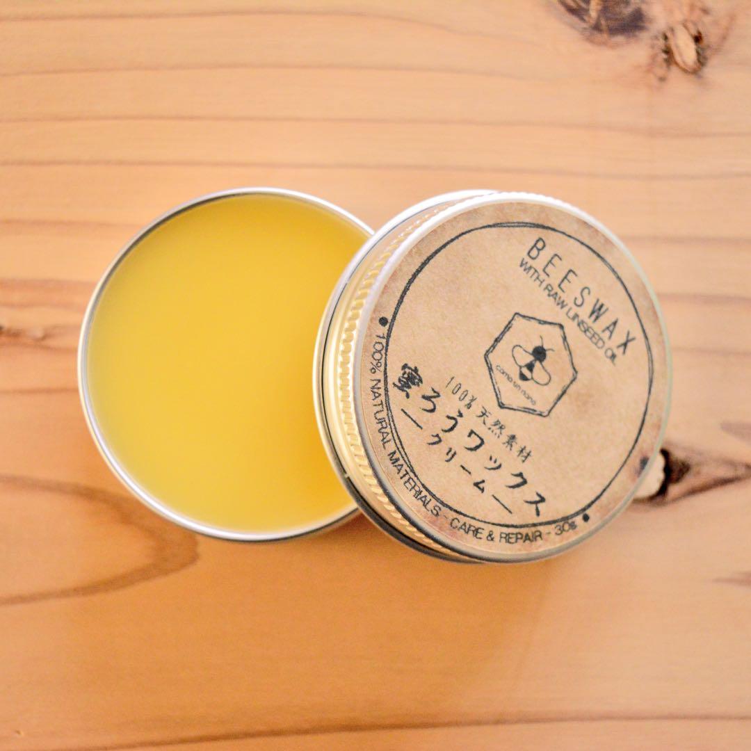 ◆ 粘性の高い高品質な未晒し蜜蝋と亜麻仁油を使用した 天然素材100%のエコロジーワックスです。 有機溶剤や合成樹脂、乳化剤を一切含まないため、お子さまやペットがいるご家庭でも安心してお使いいただけます。 - 使うほどに増す美しさ - ミツロウワックスを使うことで、木製品の表面に深い艶としっとりとした質感が生まれます。 撥水効果も高く、フローリングや家具、カトラリーなどの木製品を長く美しく保ち、 塗り込むことで木材に浸透し、濡れたような色合いを出してくれます。 また防汚効果が御座いますので汚れが落ちやすくお掃除が楽になります。 定期的なお手入れで、木肌の乾燥や割れを防ぎ、木材本来の経年変化の美しさを楽しむことができます。 - 簡単なお手入れ方法 - 1. 使用する場所のゴミやホコリを取り除きます。 2. 乾いた布や固めのスポンジにクリームを少量取り、軽く広げるように塗布します。 3. 30分程度放置し、乾き具合を確認します。 4. 乾いた布で乾拭きして仕上げます。