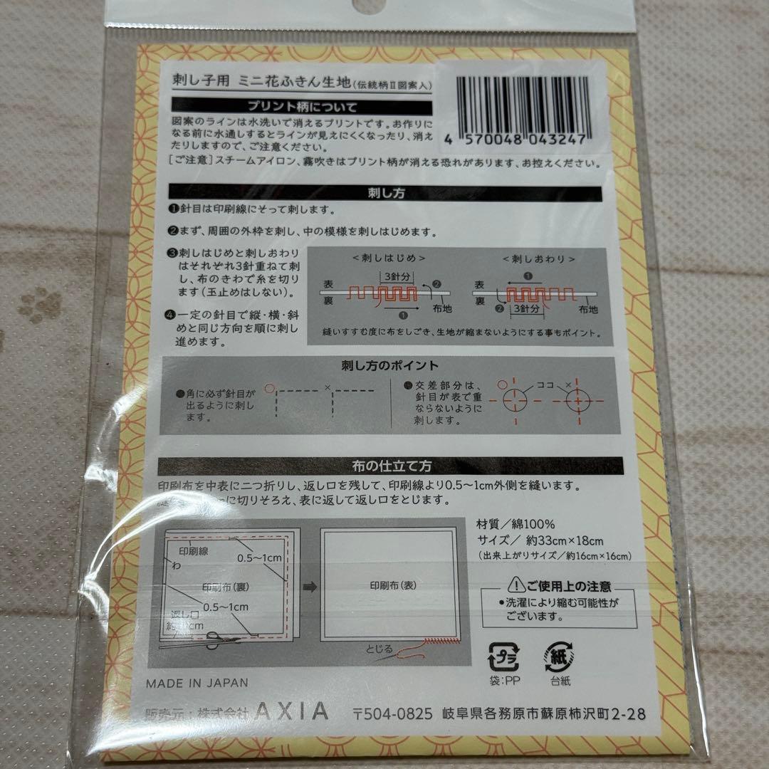 セリア 刺し子用 ミニ花ふきん生地 日本製