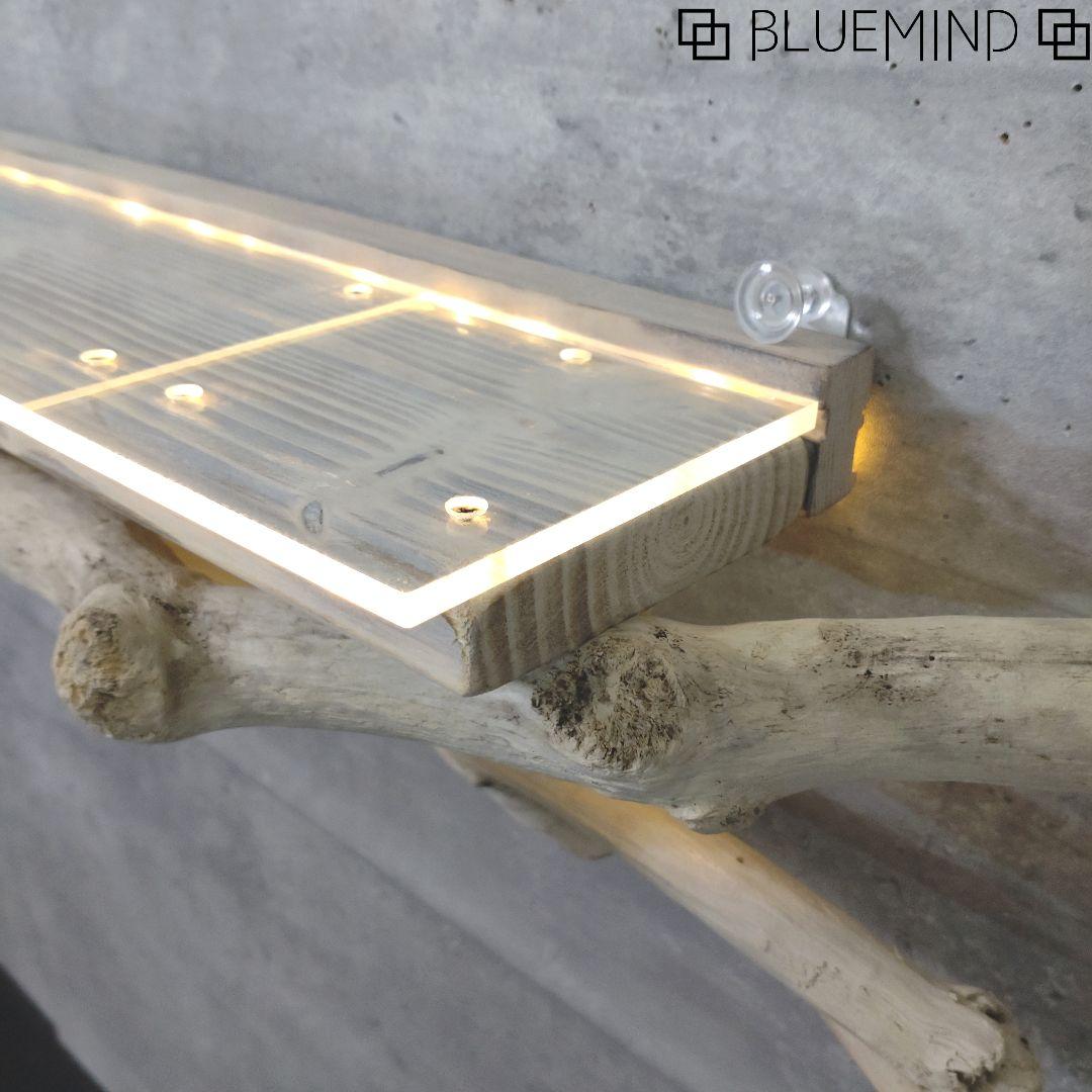 No.1331 アクリル×流木の間接照明付きウォールシェルフ 流木インテリア