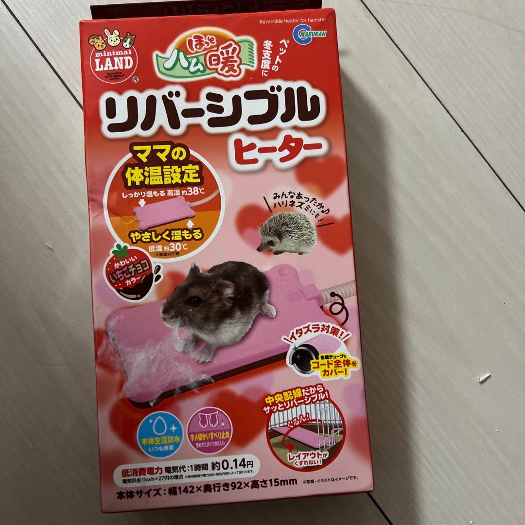 小動物用のリバーシブルヒーター、約38℃に設定可能で、快適な温度を提供します。
