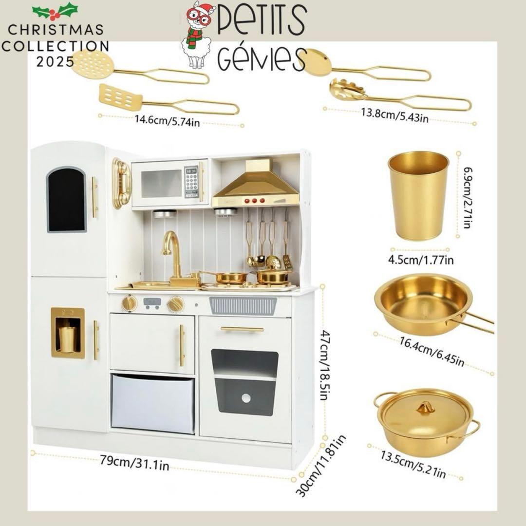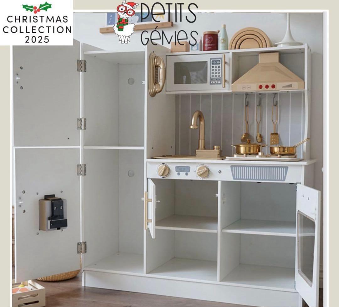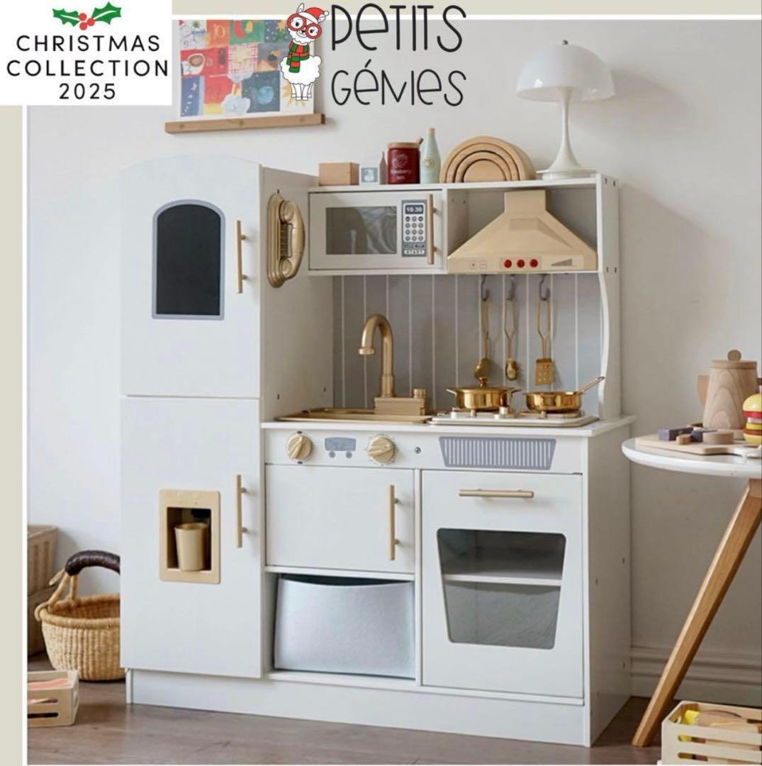PETITS GÉNIES 新品 おままごと キッチン おしゃれ 高級木 ホワイト ゴールド PETITS GÉNIES#メルカリShops