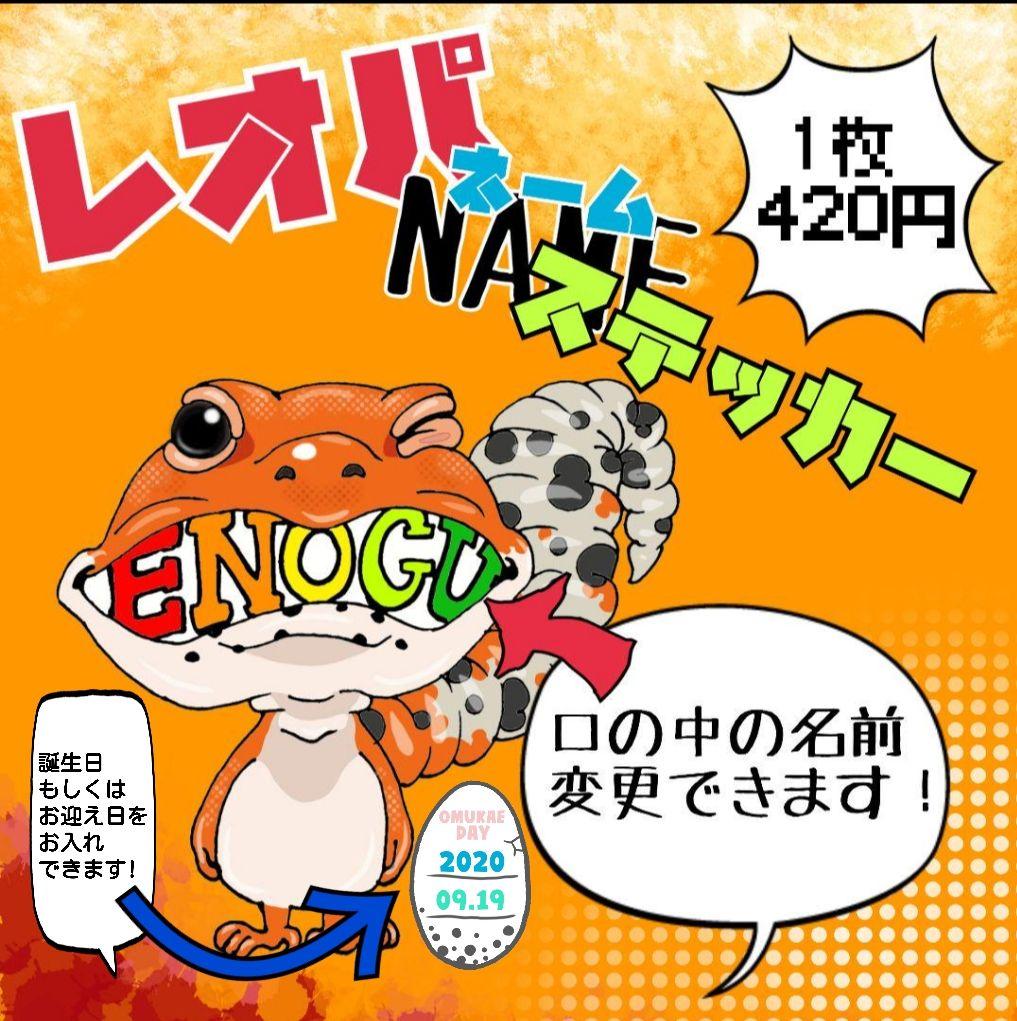 【えのぐの爬虫類ステッカーです!】 防水・UVカット仕様で 車など屋外のものにご使用することができます! サイズは6枚目を参考にお願いします! (大きいサイズが欲しいという方はコメントください!) ーーーーーーーーーーーーーーーーーーーーー 口の中の名前を変更することができます! 飼っているレオパちゃんのお名前などを コメントにてご提示いただければ 名前を変更して販売させていただきます!(^^) 卵のイラストにお迎え日や誕生日を入れれます!画像5枚目をご参照ください! 現在の種類 (画像2~4枚目をご確認よろしくお願いいたします!) ここにない種類 (エクリプス等…レオパ以外の生体) が欲しい場合は1から作成させていただきますのでぜひコメントください! 既存デザインでご購入の場合は 欲しいデザインの口の中の番号と 口の中に入れたいお名前を コメントにてお伝えください!(^^) ーーーーーーーーーーーーーーーーーーーーー
