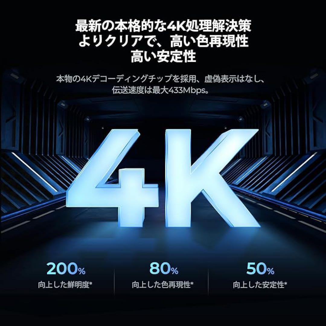 真の 4K パワーを発揮: Graige 952 のハードウェア デコードは、1080P デバイスの 4.4 倍のコンピューティング パワーを提供し、優れた 4K 30HZ 伝送を実現します。1080P 60HZ ストリーミングでは、低遅延が保証され、シームレスでラグのないエクスペリエンスが実現します。