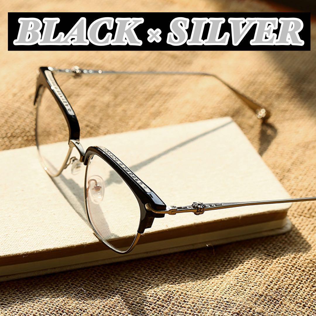 伊達メガネ メンズ レディース ブローサングラス 韓国 ブラック シルバー