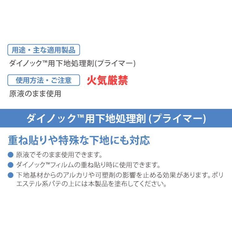 ダイノック™ フィルムが貼り付きにくい時に、基材に塗布することで、フィルムの接着性を高める液です。特に高い接着性が求められるときにも、お使いください。