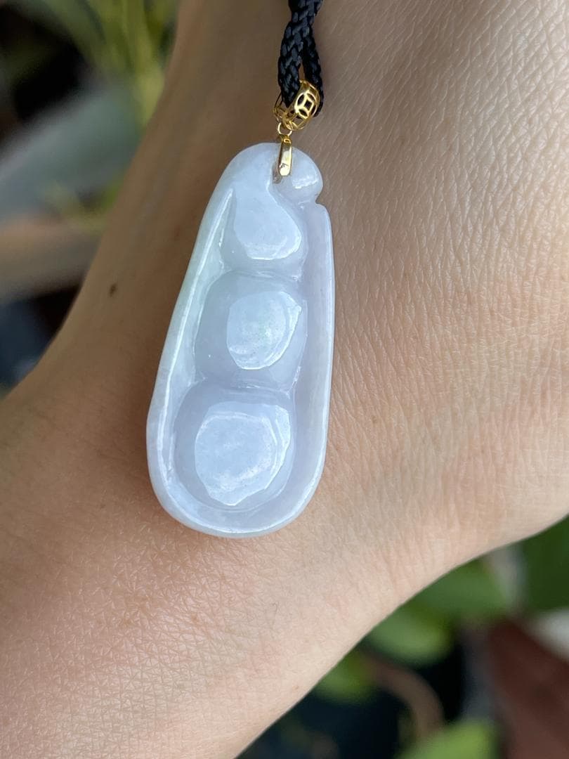 やわらかなピンクラベンダー色の翡翠を使った豆型のペンダントです。