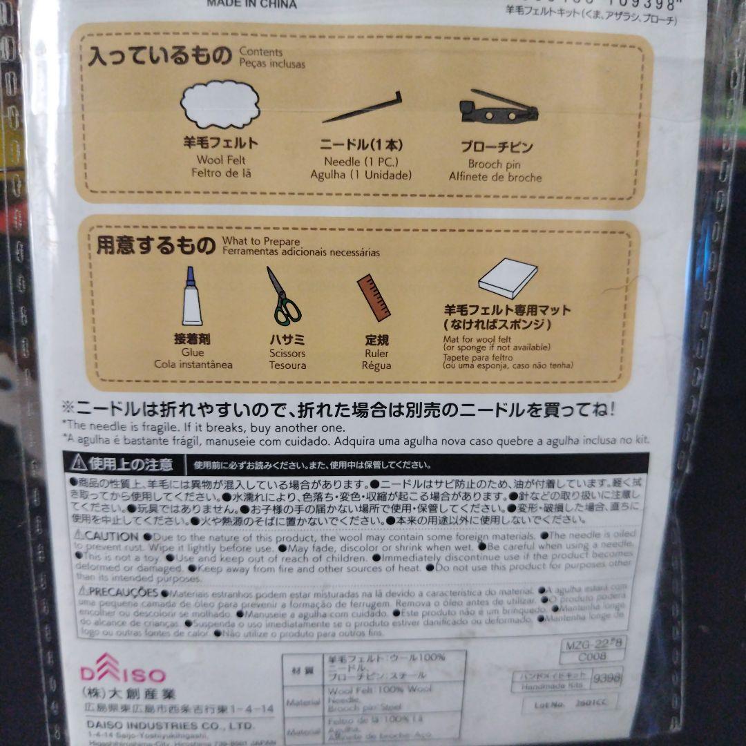 羊毛フェルトキット【くま(アザラシブローチ)】