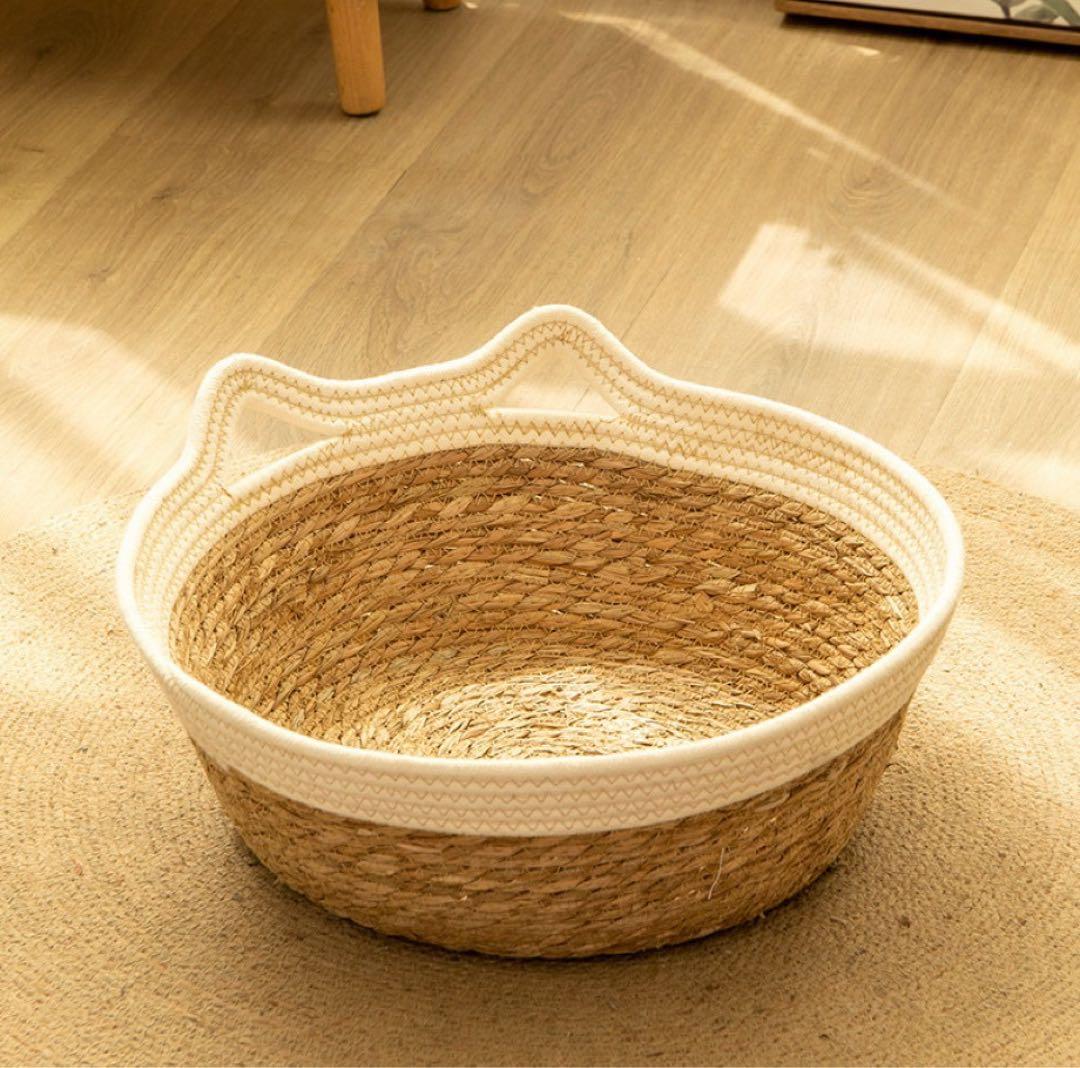 猫・小型犬向けラタン風ベッド 猫鍋 カゴベッド 猫耳 ワンコ型