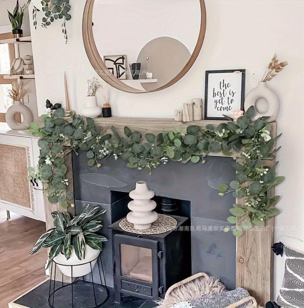 ❑まるで本物のような質感と色合いの、ユーカリ&かすみ草のフェイクガーランドです。