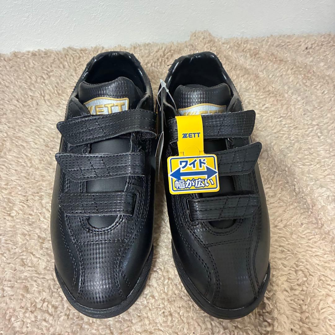 ワイド幅のブラックトレーニングシューズ、23cmサイズ、ZETT製。