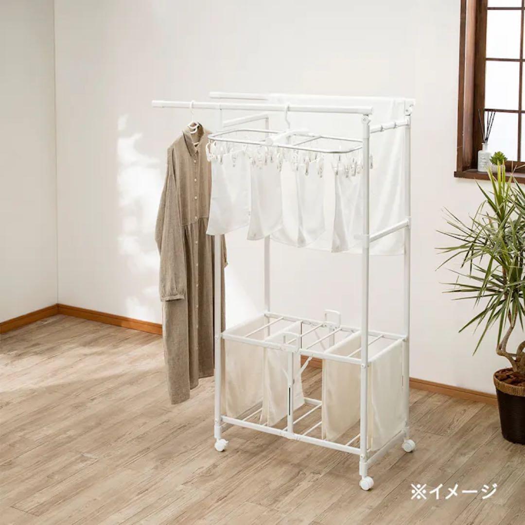 ロング丈も掛けられるアルミ折りたたみランドリーラック パタランミニ ホワイト