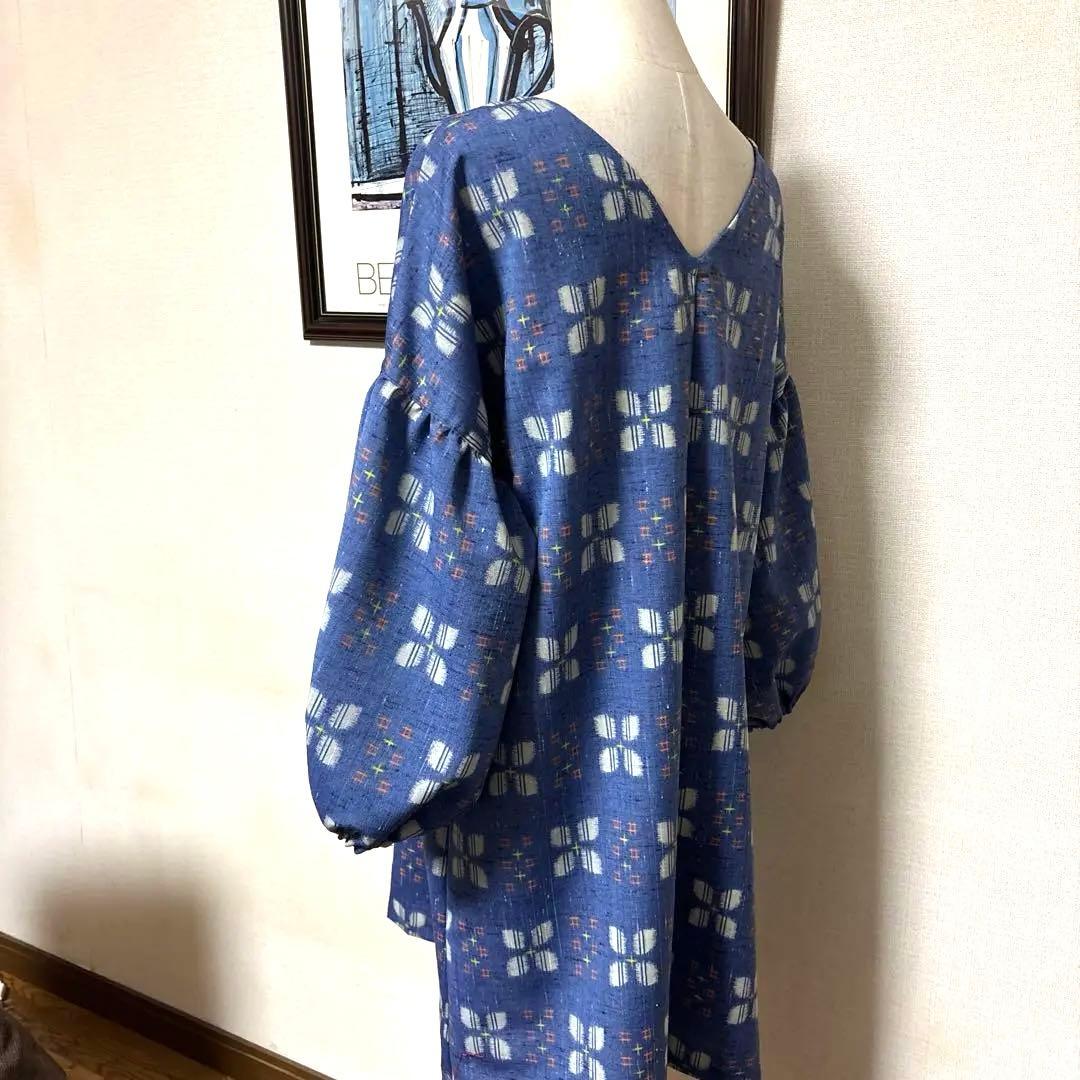 着物リメイク バルーン袖ワンピース チュニック 毛 着物反物から