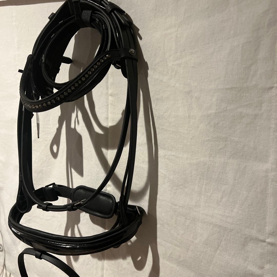 乗馬用品、水勒頭絡、普通サイズ、黒、平革、新品、未使用、
