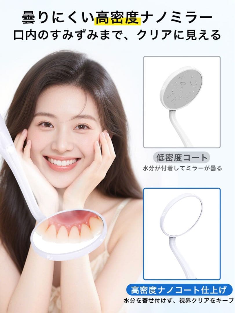高輝度LEDライト付きで、口の奥までしっかり確認できるデンタルミラーです。
