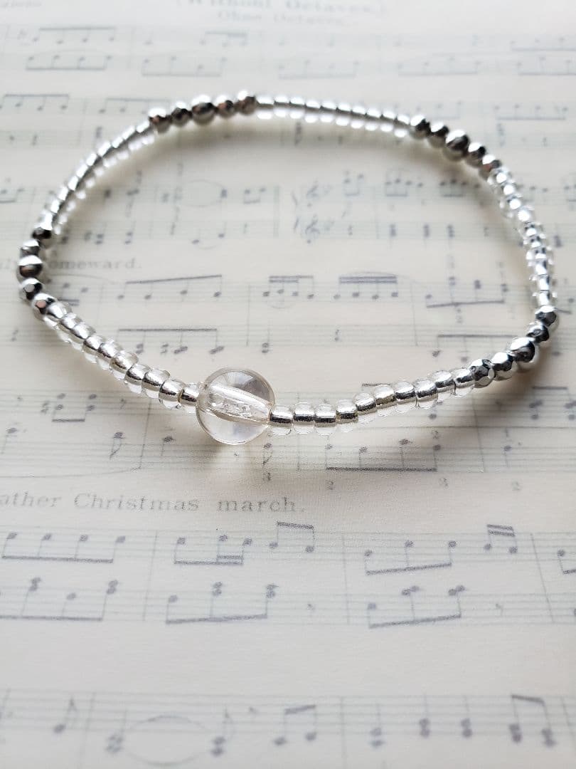 ビーズ シルバー系 ゴムブレスレット2本セット ハンドメイド