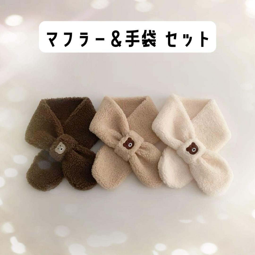 もこもこ小熊セット♡ マフラー&手袋セット アイボリー 韓国キッズ ギフト