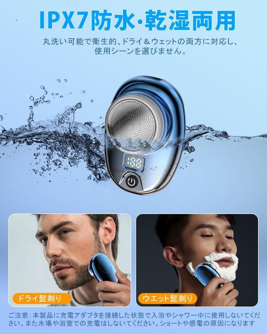 【IPX7防水・乾湿両用】電動シェーバー はIPX7防水仕様で、本体は直接水洗いでき。シャワー中でも使用可能、使用後は水洗いで簡単に清潔できます。また、乾湿両用設計により、シェービングシーンに応じて柔軟に対応し、いつでも清潔で便利なシェービング体験を提供します。