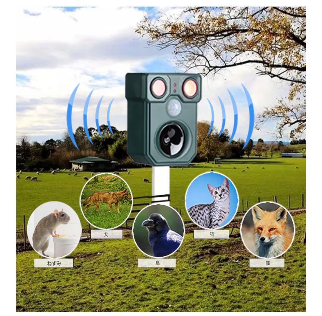 動物撃退器 超音波/警報音/LED強力フラッシュライト機能/猫撃退 糞被害 鳥害対策/ソーラー充電 USB充電 電池給電 /IP44防水防塵/超長待機/10m感知範囲 5つ撃退モード