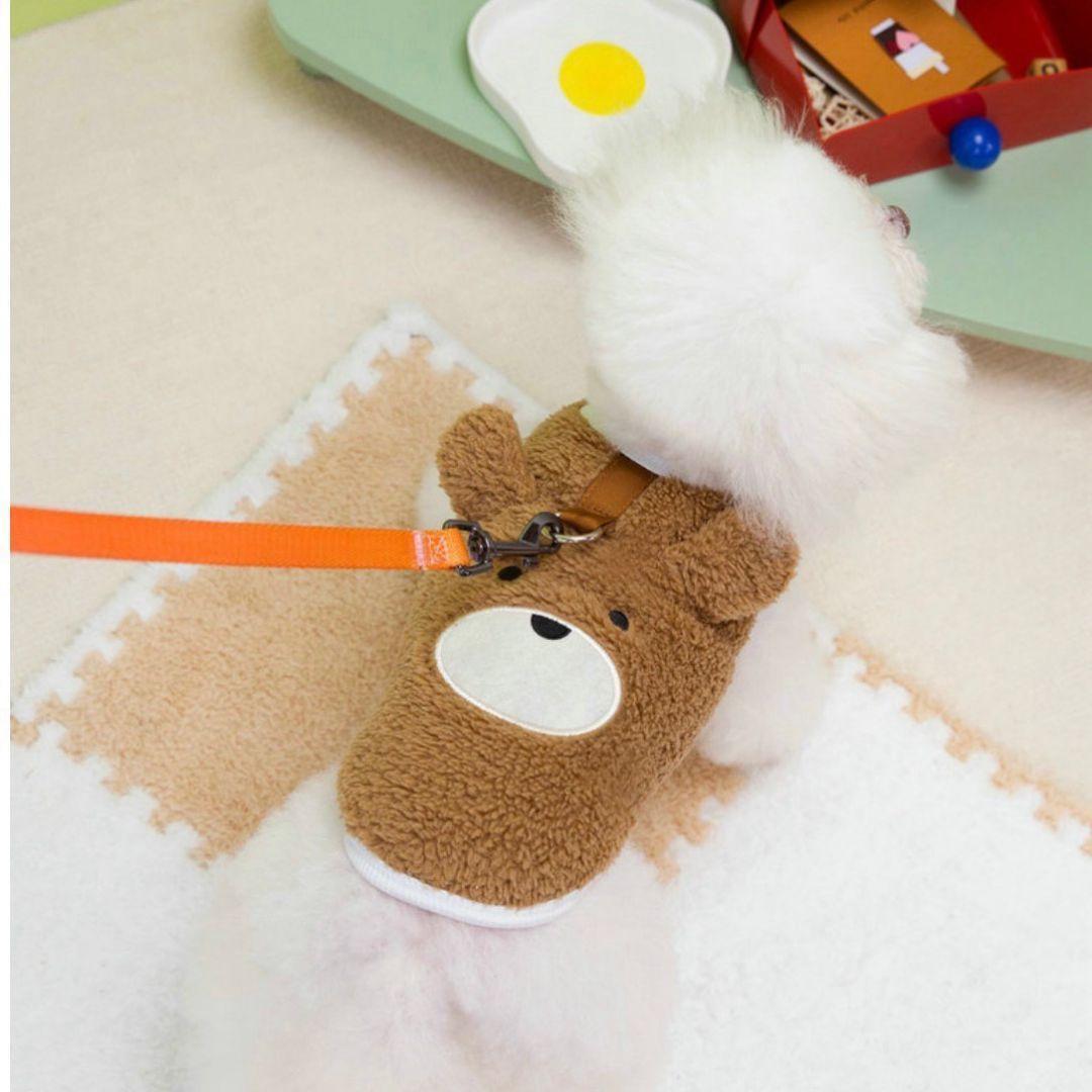 ふわふわ素材が気持ちいい、くまさんデザインのモコモコドッグウェアです。立体のお耳がとってもキュートで、寒い季節のお部屋着やお散歩にぴったり。